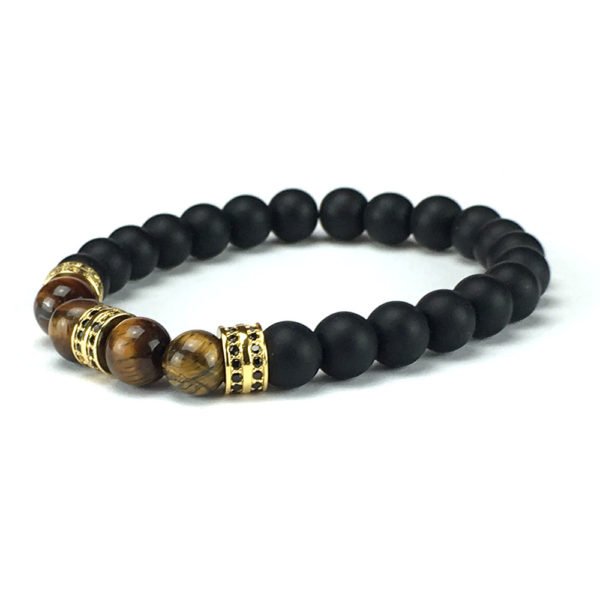• Armbandcombinatie met zwarte matte steen en witte kralen